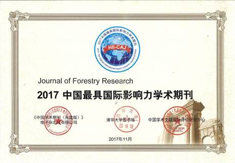 《林业研究》(英文版)连续4年(2014-2017)获评“中国最具国际影响力学术期刊”。“中国最具国际影响力学术期刊”是由中国学术期刊(光盘版)电子杂志社根据“期刊国际影响力指数”高低对我国3500种科技期刊进行评价,遴选出2017年“中国最具国际影响力学术期刊”175种(TOP5%)。