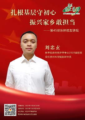 刘忠玄校友出身于贵州省平塘县的一个普通农村家庭,靠务农为生的父母供出了他和妹妹两名大学生,家境贫寒的他通过自己的努力走出了一条光明的道路,随后他毅然投身家乡建设,用实际行动回馈养育自己的土地。