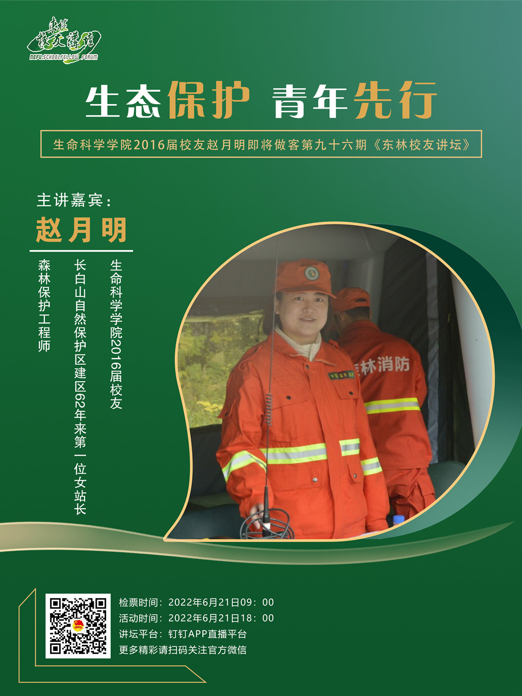 主讲嘉宾:赵月明生命科学学院2016届校友,长白山国家级自然保护区锦江保护管理站副站长,森林保护工程师