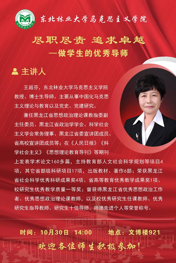 报告人简介:王越芬,东北林业大学马克思主义学院教授、博士生导师。主要从事中国化马克思主义理论与教育以及党史、党建研究。