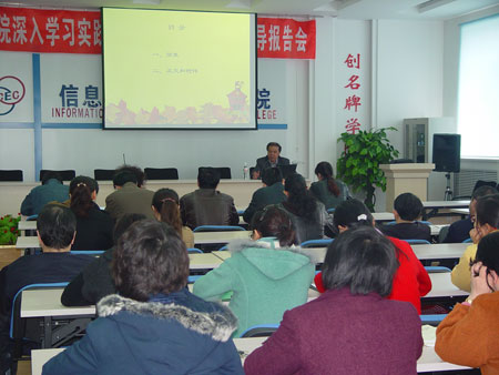 2009年4月22日下午2时,信息与计算机工程学院在216会议室结合深入学习实践科学发展观活动,举行了如何提高我院青年教师科研立项水平的专题学术报告会。教育部重点实验室主任刘一星教授作了题为《关于国家(省)自然科学基金面上项目申请书撰写的体会》专题学术报告,学院党总支书记魏晓慧、副院长任洪娥以及全体教职员工参加了专题学术报告会。会议由学院副院长任洪娥同志主持。