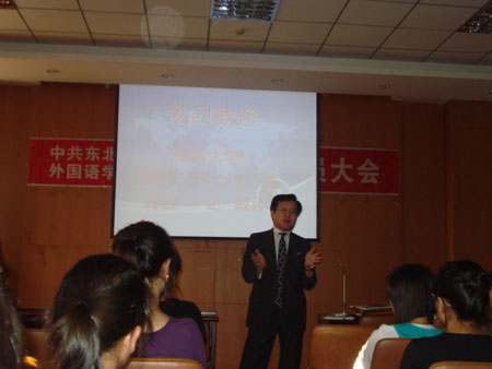 9月10日下午3点40分,日本福冈大学国际交流中心主任武居一正教授在外国语学院多功能厅面向我院08、09级日语专业的学生进行了题为《走进日本教育体制》的讲座。到场的嘉宾有外国语学院副院长郭永刚、福冈大学驻哈尔滨事务所所长董清波。