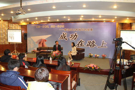 12月23日18:00,由研究生部团委组织策划的访谈活动第六期《成功在路上》在动资楼国际会议厅顺利举行。我国林木遗传育种专家、博士生导师、东北林业大学校长杨传平教授做客《成功在路上》,为同学们讲述了他从一名林场知青到大学知名教授的成长历程。访谈过程中,杨校长为同学们现场朗诵文章并演唱歌曲,展现了一名学者的多才多艺。访谈现场座无虚席,很多同学席地而坐,气氛热烈,掌声频频。