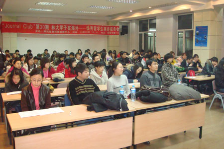 12月28日晚6点,由研究生部科技创新中心主办的第二十期“Journal Club”在我校研究生楼709顺利举行。东北林业大学的三位留学博士张志军、王恩姮、李志伟分别对留学申请、国外生活经验、回国后的心态调整等问题进行了详尽的介绍和讲解,并同现场同学进行了热烈的讨论。