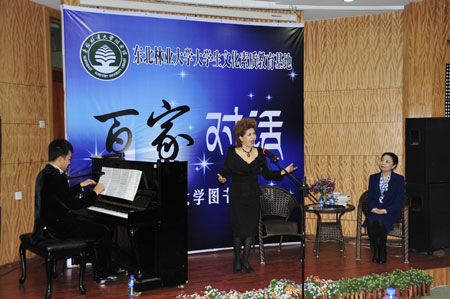 4月23日18点,东北农业大学声乐系主任、第五届意大利“TERRE DEL FIESCHI”国际声乐比赛第三名获得者,轻型抒情女高音歌唱家蒋丽与“意大利‘贝利尼’国际声乐比赛”指定钢琴伴奏者、钢琴家夏靖博应邀莅临图书馆,在图书馆学术报告厅做客“百家对话”活动。