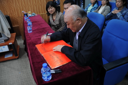 互动环节,大家更是踊跃。当学生针对目前我校考试较为频繁提出疑问时,马老笑着告诉青年学子,这是学生学习能力提升的途径,要正确看待这一问题。问题还在继续,场面相当热烈。面对这位德高望重、年事已高的老人,大家有太多的不舍和不忍,现场的这份感动和感激,主持人交由图书馆领导代为大家表达。邹红菲馆长首先代表大家十分感谢马老对图书馆的贡献与厚爱,她讲到图书馆在大学发展中不仅发挥着重要的图书信息资源保障作用,更是学校重要的文化素质教育基地,大师级人物的到来,无疑会提升图书馆的人文效应,给图书馆的工作人员和广大学子带来新的治学与读书理念。她表示,今后将致力于把图书馆打造成为我校师生的精神家园,为学生的成长助力,为学校的发展做好辅助与保障。最后邹馆长代表图书馆祝愿马老身体康健并敬献了图书馆馆史两册留念。