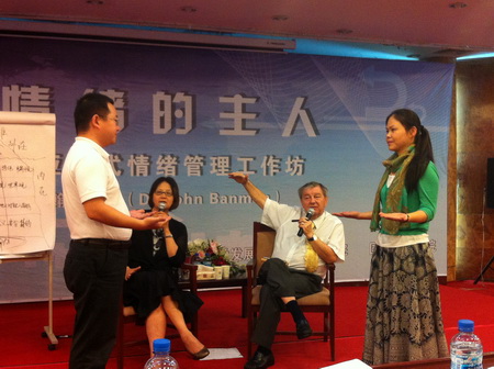 贝曼博士通过互动的方式,让所有听课者参与到认识自我的过程中,他让大家接纳自己、欣赏自己,做自己情绪的最好朋友。贝曼博士分析了个人内在冰山的隐喻,也就是说每个人的行为,只是浮在水面上的冰山一角,在我们看不见的水面下面,还隐藏着感受、观点、期待、渴望、自我,而正是这些我们看不见的因素控制了能够看到的行为。比如愤怒是我们看到的个人外在表现,但深层次中,这可能是他对于期待某事落空的一种外在表现。贝曼博士建议大家,当你意识到负情绪产生的时候,要按一下暂停,想一想产生这个情绪的根源是什么,然后看看自己是否能够选择不一样的方式改变这个情绪。贝曼博士希望大家都能对自己的情绪负责任,从而实现更高的自我价值,做出更好的人生选择,使个人的情绪达到和谐。(文:孟姝轶/图:王乙)