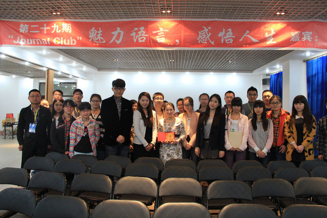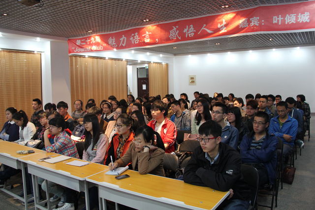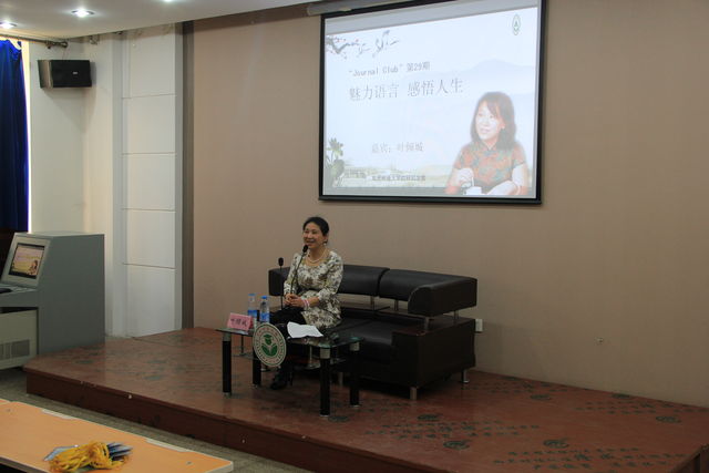 为提高我校研究生文化修养,感受语言的魅力,近距离与优秀文学工作者接触交流,2014年4月13日下午由研究生院主办、校研究生会承办的第二十九期“Journal club”活动在研究生楼006室圆满结束。本次活动成功邀请到著名作家、编剧叶倾城女士。叶女士以“魅力语言,感悟人生”为主题,结合流行的文艺影视作品,串以婉约的诗词,同我们分享了她对人生的感悟。