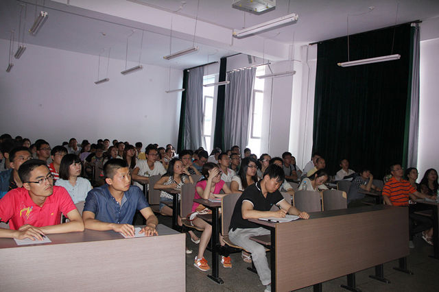 首先,王教授从美国高等教育的学位制度、大学体系、知名学府等几个方面,分析了美国高等教育开展的特色与成就。而后详细介绍了美国的留学生教育、人才培养模式、中国学生留学情况。同时,王教授介绍了他所在的西弗吉尼亚大学的专业设置情况、专业排名情况、以及留学生招生情况。针对同学们比较关心的留学申报条件、流程,导师选择,学校选择等一系列留学问题,王教授给予了耐心的讲解,赢得了在场师生的阵阵掌声。
