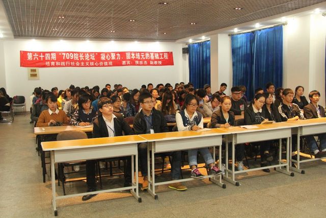 2014年9月24日晚18点整,由研究生院团委主办的第六十四期“709院长论坛”在研究生楼006室隆重举行。本次论坛邀请到了东北林业大学理学院党委书记、黑龙江省教育电视协会副会长、高等教育思想政治教育研究会理事侯彦杰副教授,以凝心聚力、固本培元的基础工程——培育和践行社会主义核心价值观为主题,与同学们进行了一场别开生面的价值观学习。