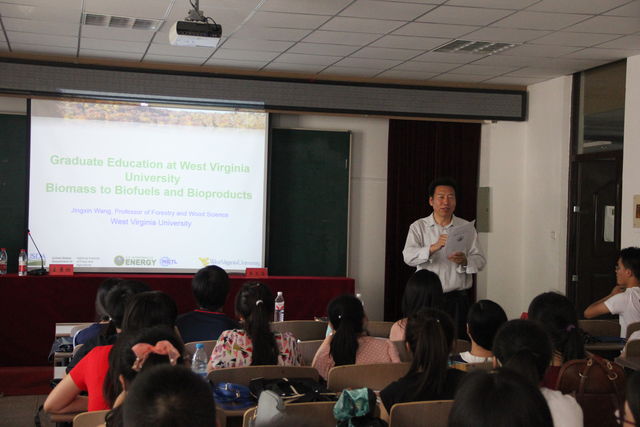 为进一步活跃学术氛围,交流学术思想,应研究生院常务副院长王立海教授之邀,美国西弗吉尼亚大学(West Virginia University)终身教授、林业与自然资源部生物材料中心主任王景欣教授于2015年7月7日14:00来校讲学,为我校师生呈现了一场主题为“美国林科研究生教育与美国生物质能源开发及能源政策”(Graduate Education at West Virginia University Biomass to Biofuels and Bioproducts)的精彩报告。会议由研究生院常务副院长王立海教授主持。