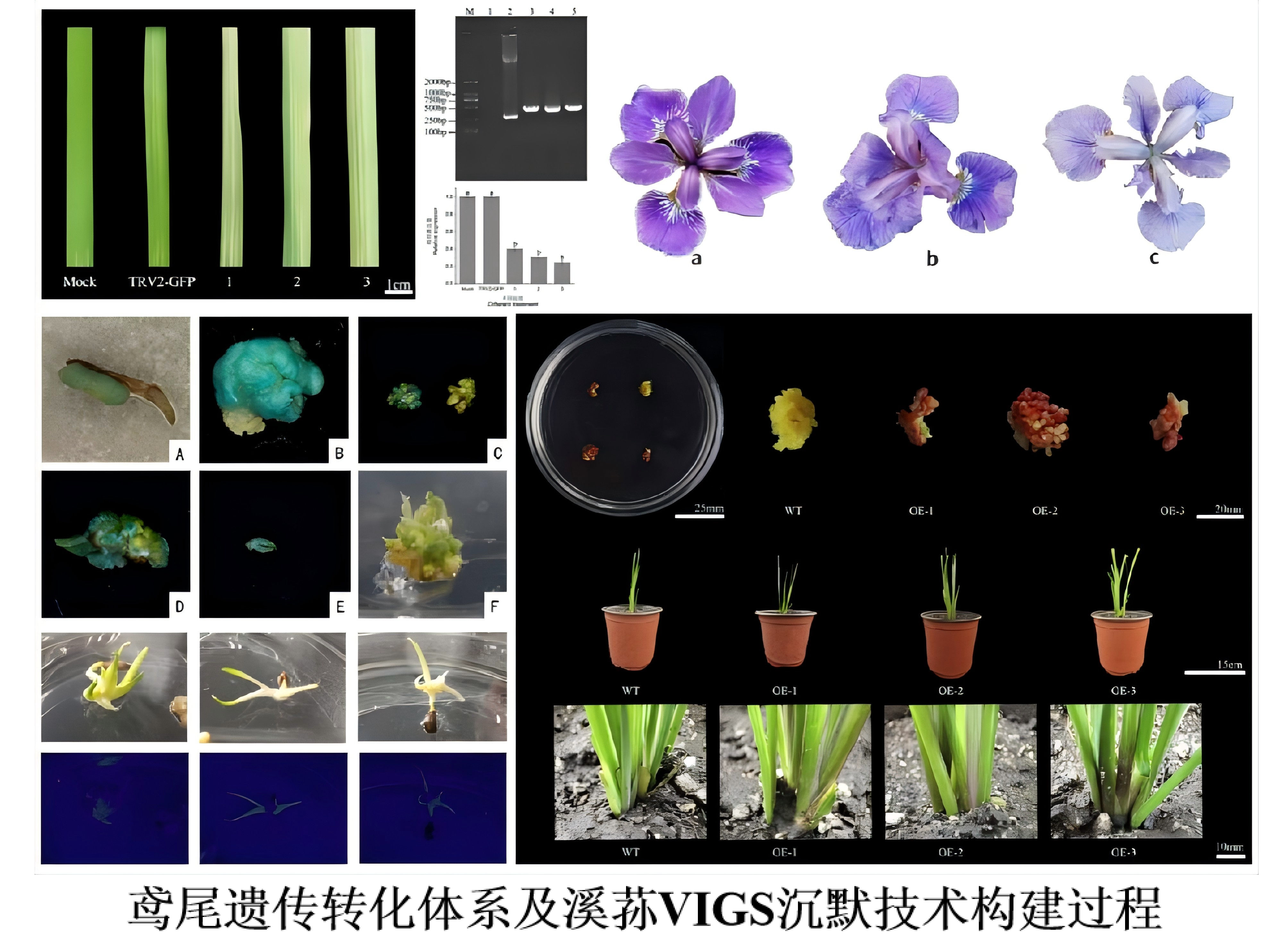 3.首创了无损条件下鸢尾功能基因固相提取技术体系、VIGS基因沉默技术和鸢尾高效遗传转化技术体系,实现了鸢尾植物的功能基因快速提取及本源上功能验证,获得抗性、矮化、促分蘖及花色、花期调控等具有自主知识产权的重要性状基因15个,通过转基因育种技术创制鸢尾种质120个;构建鸢尾花色分子调控网络,解析了花期、花色、株高及分蘖等重要观赏性状的调控机制,为鸢尾分子辅助定向育种的深入开展奠定了基础。