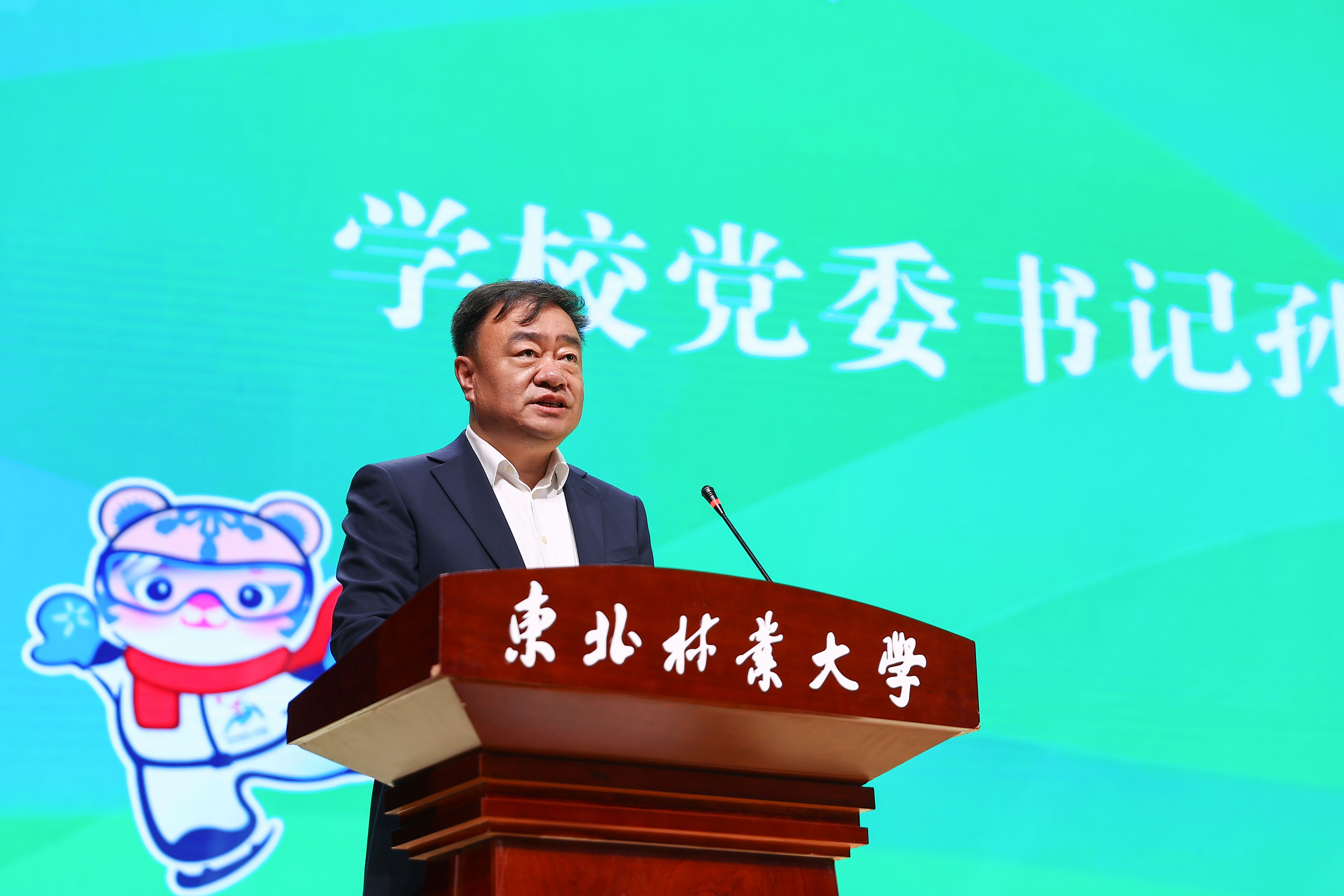 党委常委、副校长翟雪峰宣读了《关于成立东北林业大学第九届亚冬会青年师生宣讲团的决定》。车成全为学校第九届亚冬会青年师生宣讲团授旗。