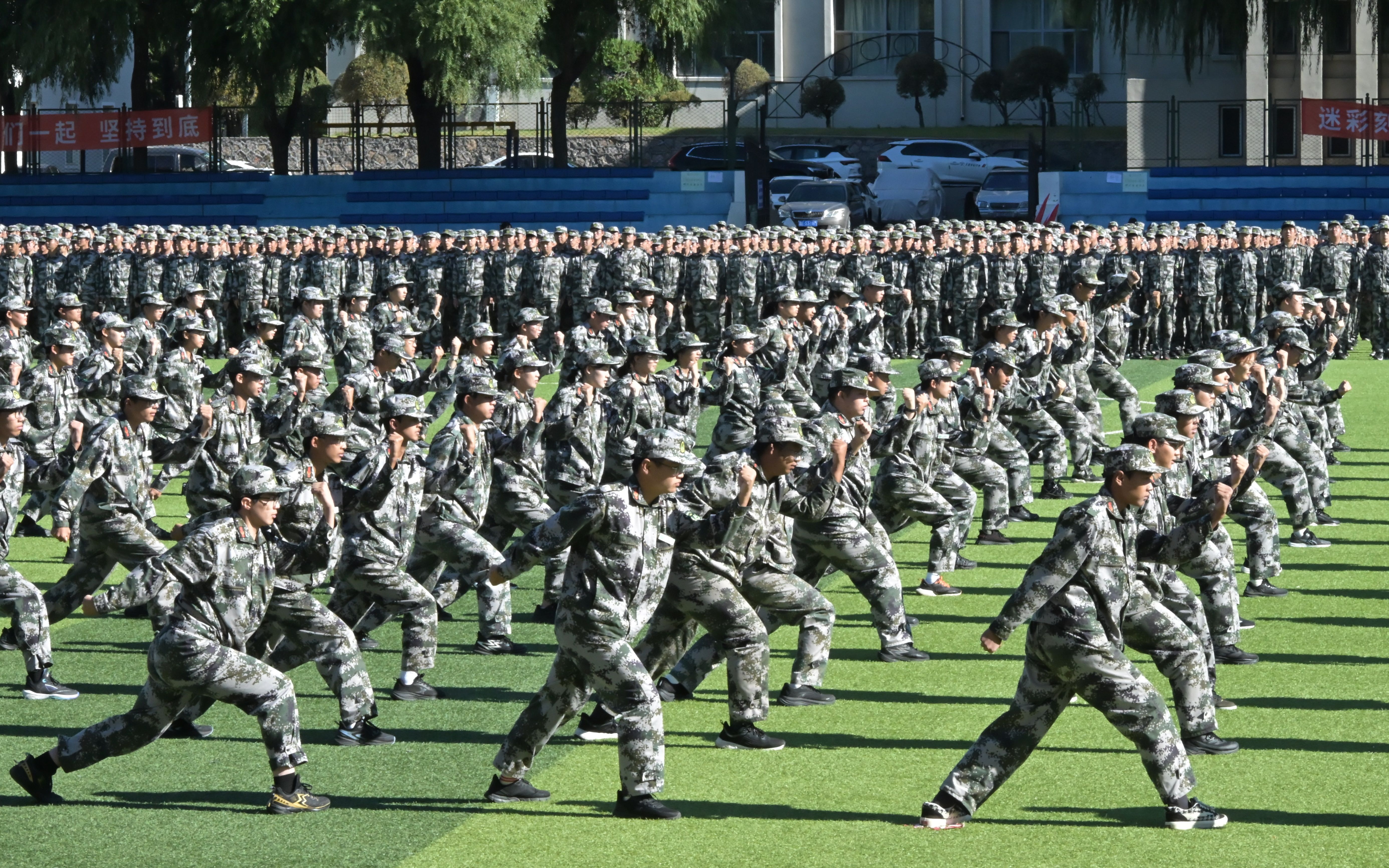 军体拳、捕俘刀、刺杀操等军训集体项目汇报展演各展风采。