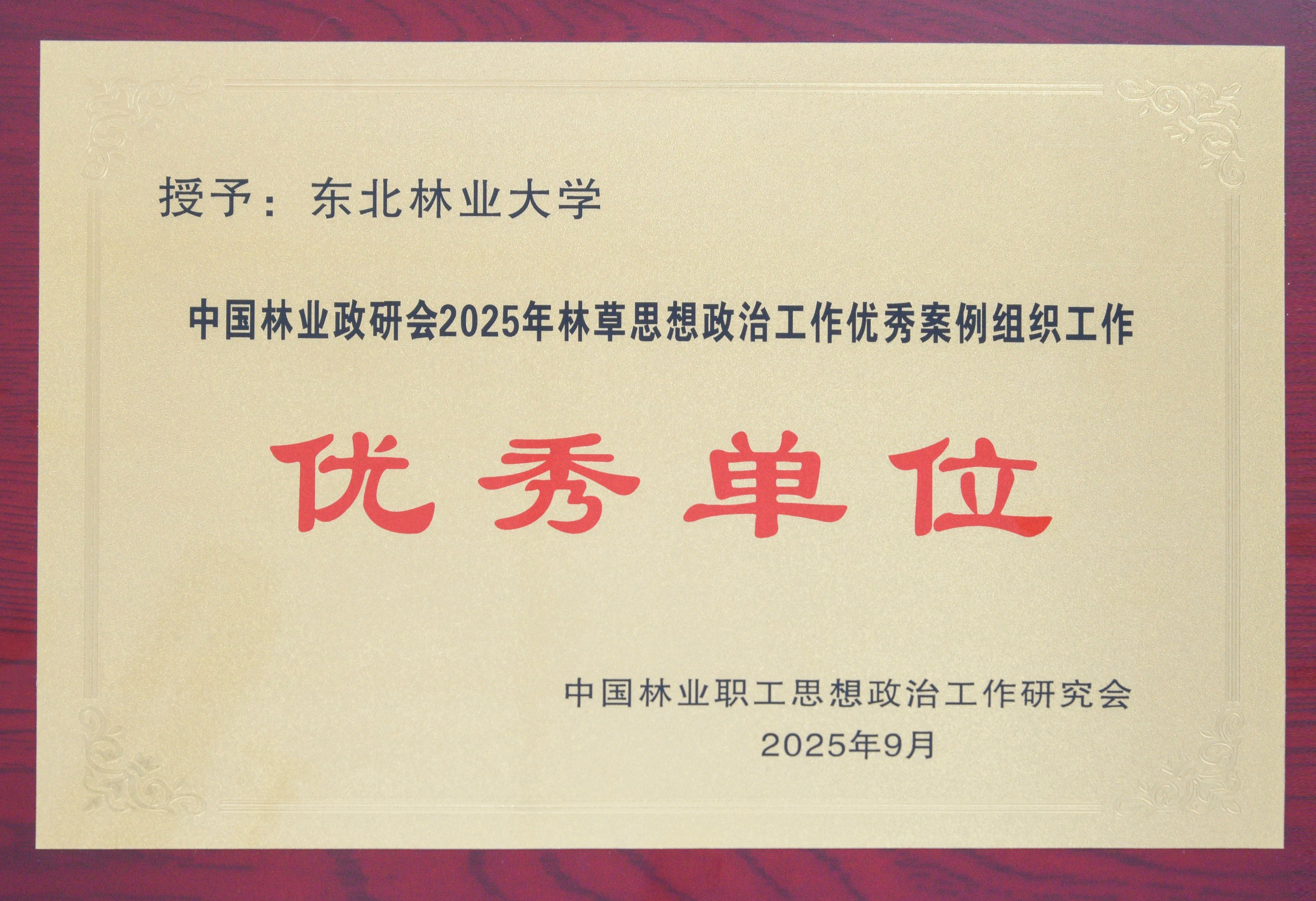 近日,中国林业政研会公布了2025年林草思想政治工作优秀案例入库名单和组织工作优秀单位名单,我校推荐的案例《“五木育人”:具有“林元素”特色的思政育人体系构建》被评为优秀案例,我校获评组织工作优秀单位。