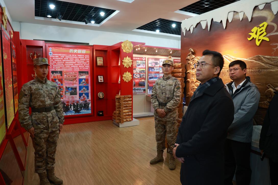 升旗过后,学校一行人员参观了哨所官兵的荣誉墙、宿舍及训练场地,切身感受部队官兵过硬的军事素养、严谨作风纪律和无私奉献精神。