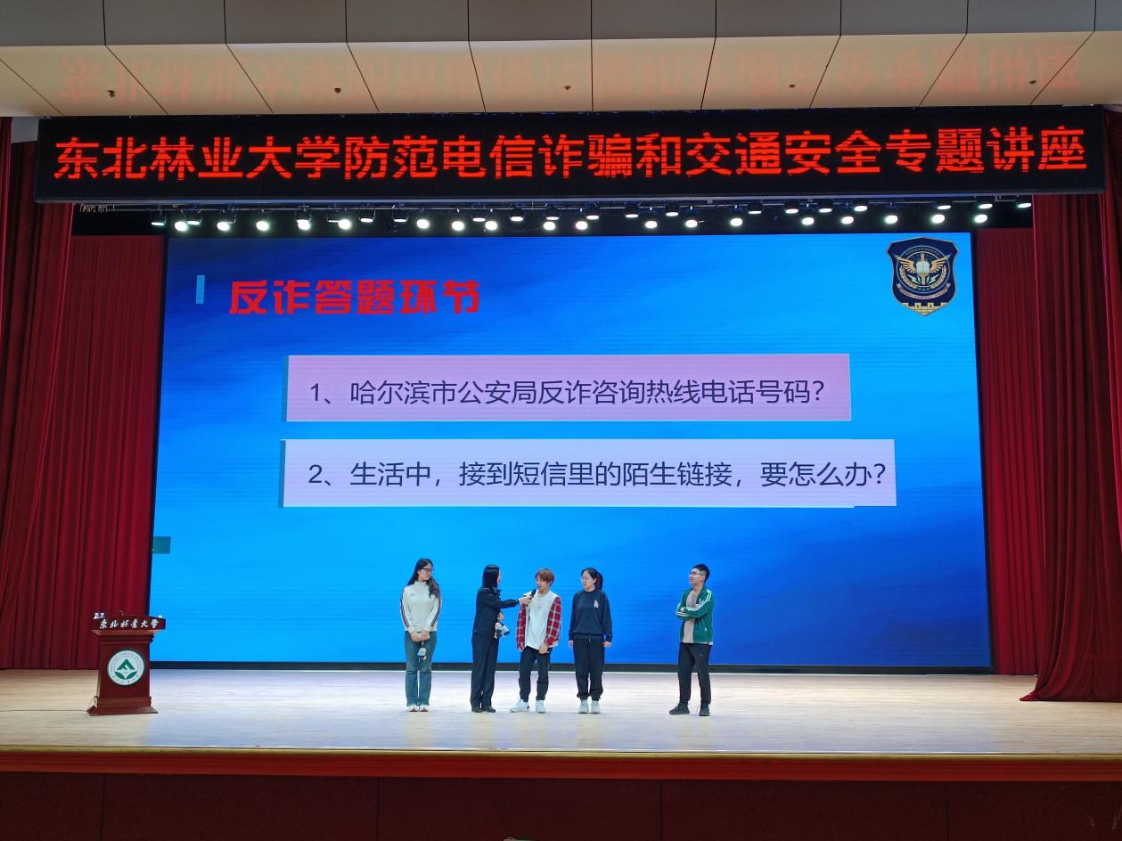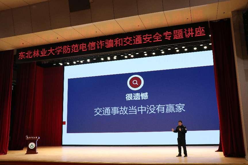 为进一步普及校园安全防范知识,强化师生安全意识,增强师生防范和应对突发安全事故的处置能力,4月17、18日,我校邀请哈尔滨市公安局刑侦支队新型犯罪侦察大队警官陈思思、哈尔滨市公安局交警支队警官吴巍、哈尔滨市消防协会会长杜新兵,为师生讲授防范电信诈骗、交通事故和火灾逃生等安全知识课,3000余名师生参加此次活动。