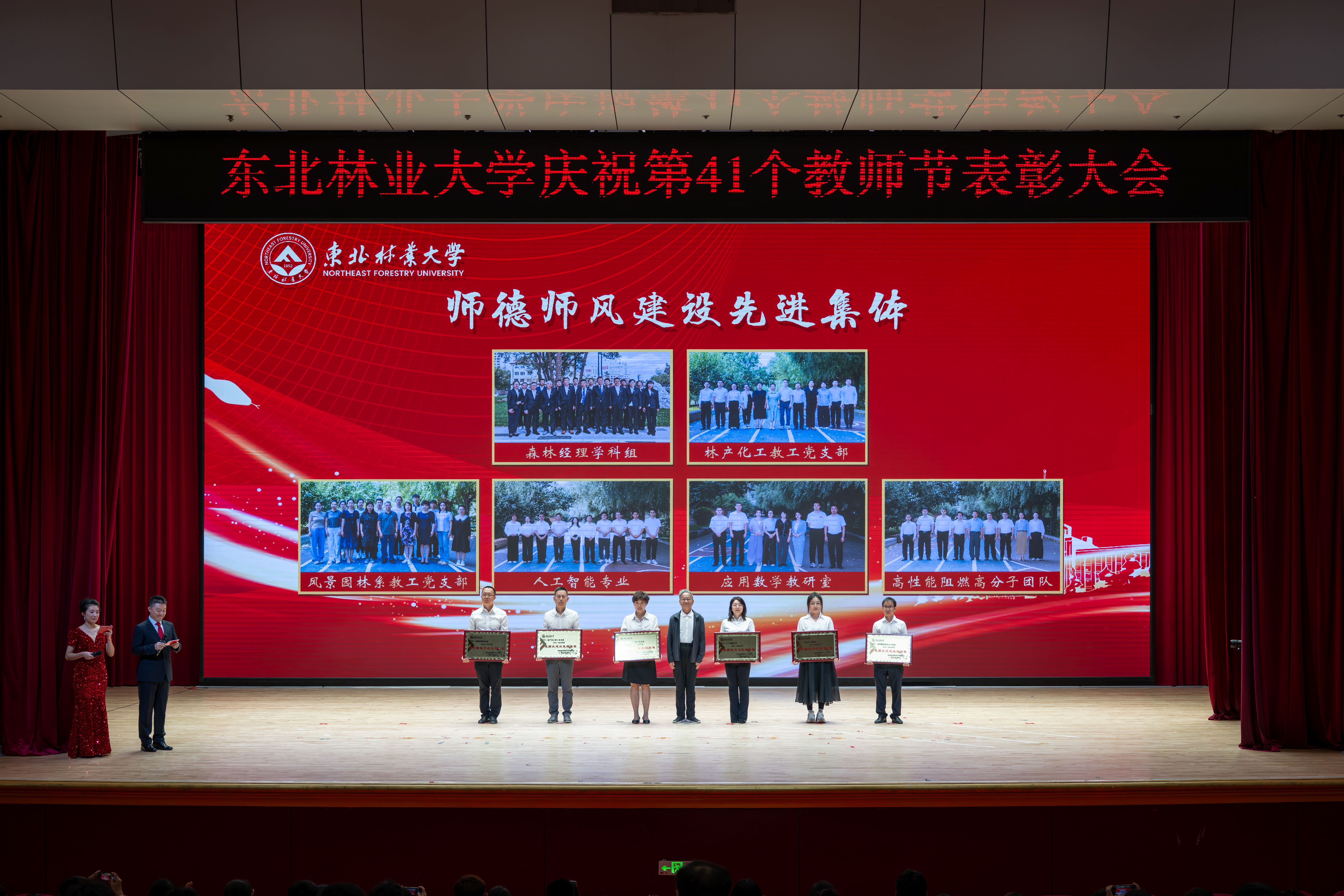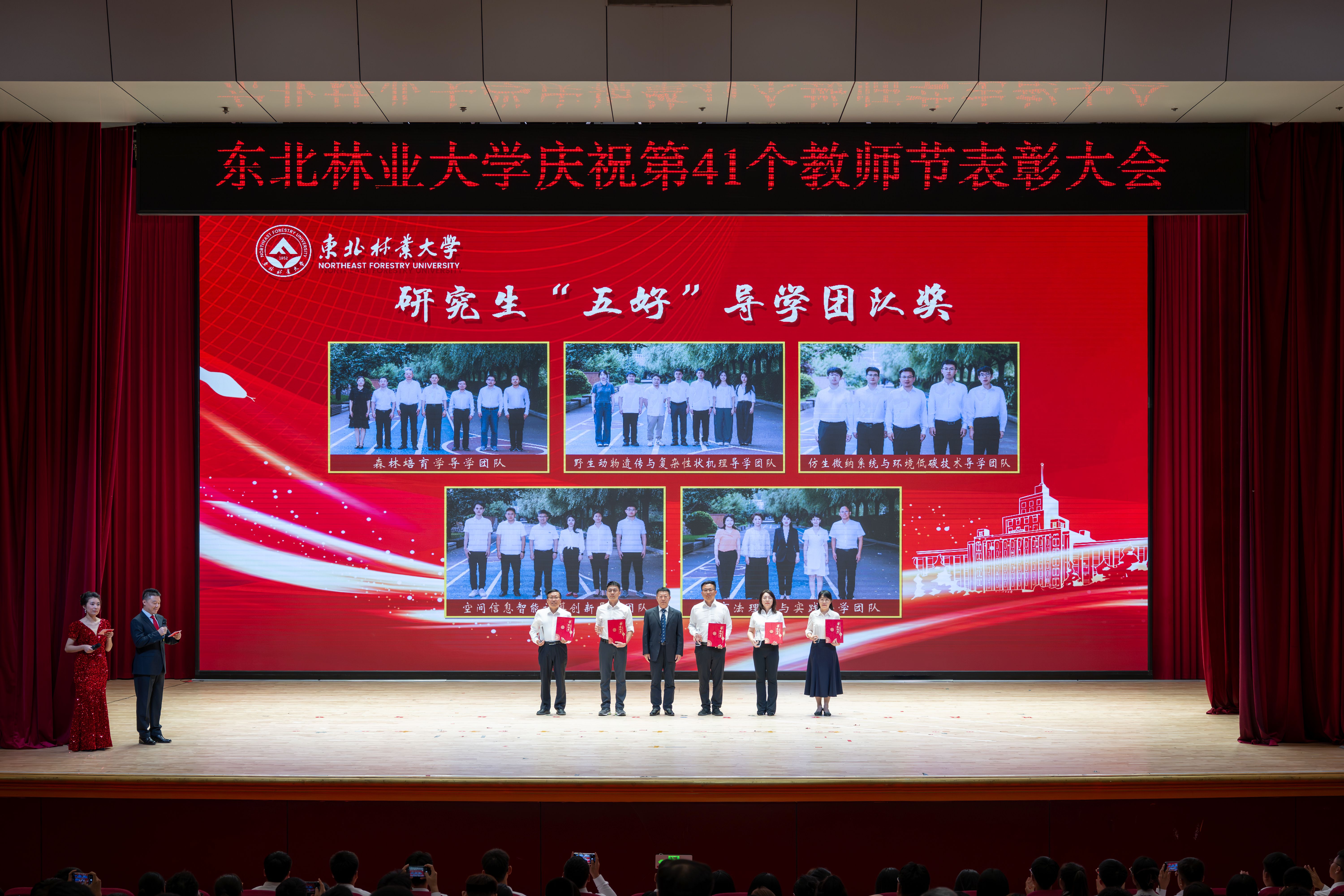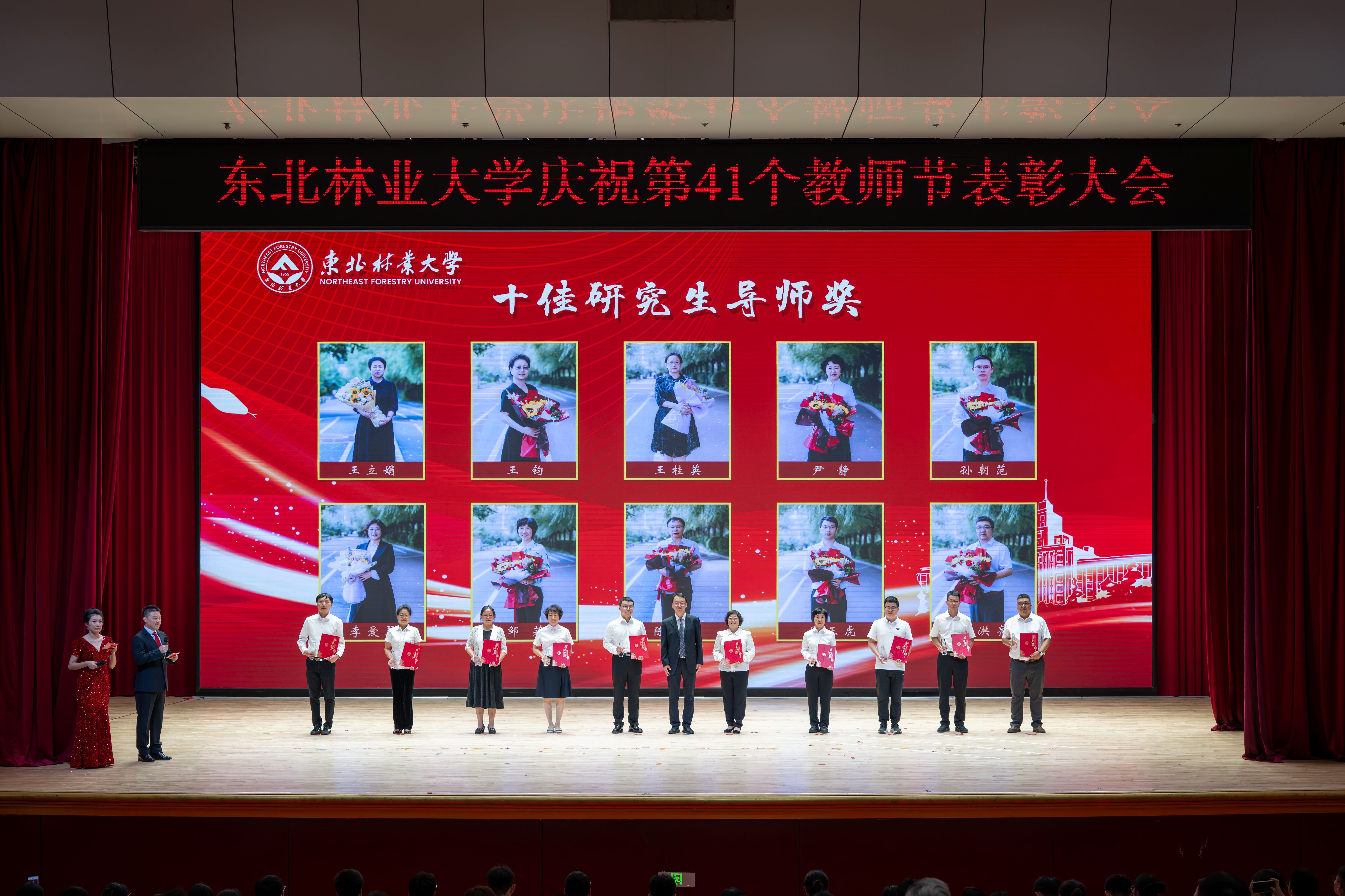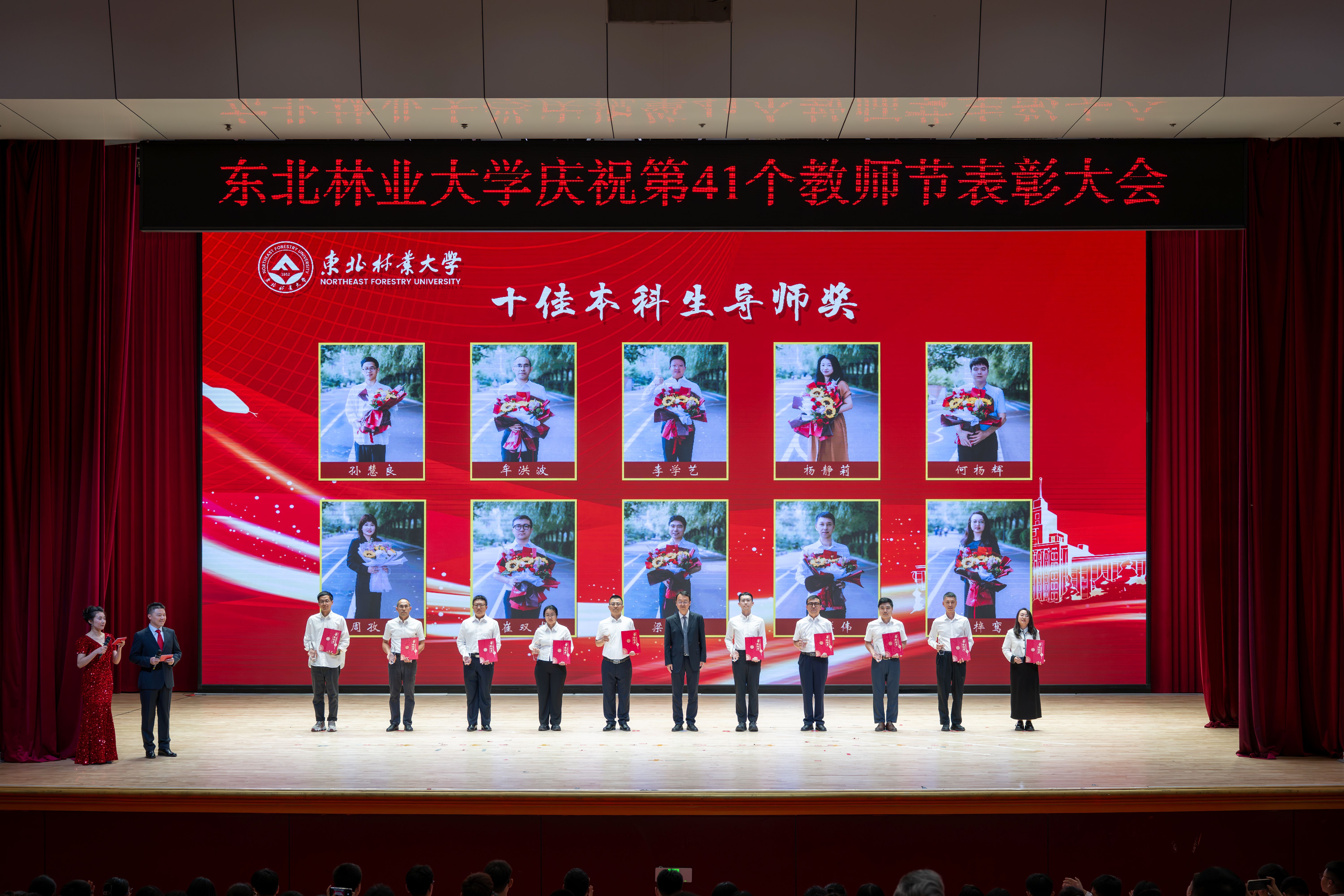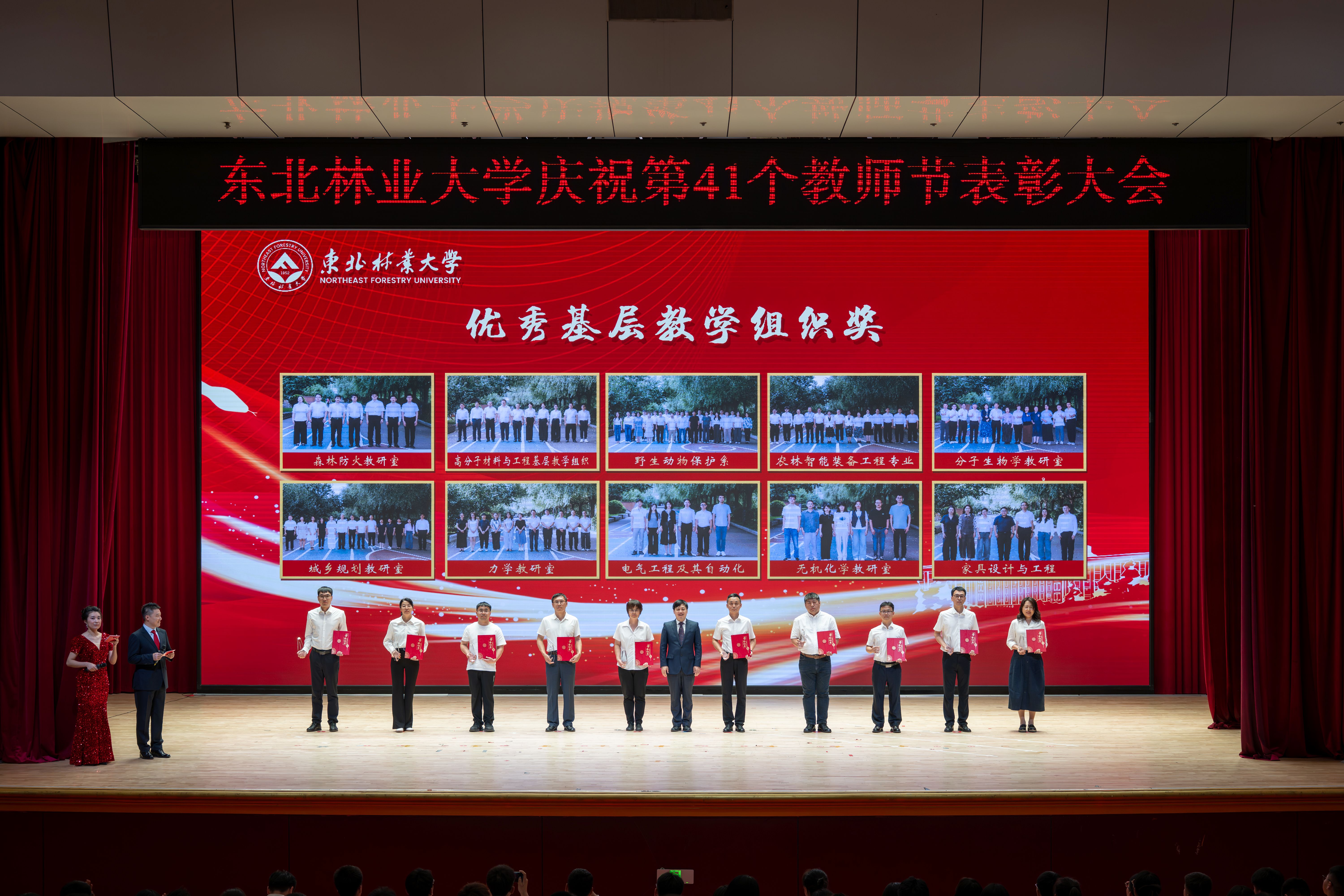 颁奖仪式上,李坚院士,校长宋文龙,党委常委、副校长刘守新,党委副书记翟雪峰,党委常委、副校长于海鹏,党委常委、副校长李明泽,党委常委、副校长张春雷,党委常委、校长助理、林学院院长孙龙,分别为“师德师风建设先进集体”、“师德先进个人”、“乡村振兴先进个人”和“乡村振兴先进团队”、“优秀研究生‘五好’导学团队”、“优秀基层教学组织奖”、“十佳本科生导师”和“十佳研究生导师”、“教学质量特等奖”、“教学改革先锋奖”等荣誉的获得者及获奖代表颁奖。