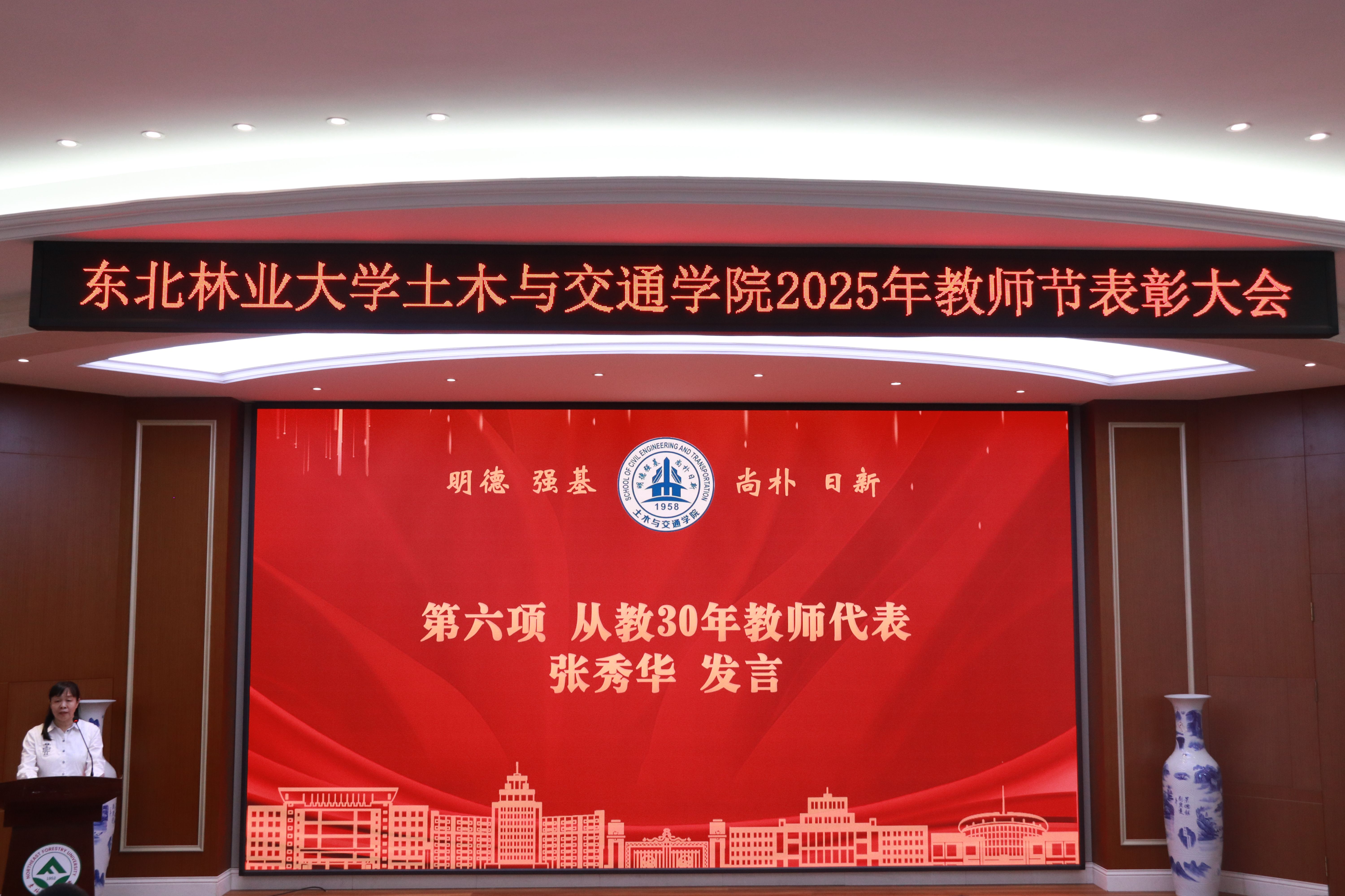 从教30年教师代表张秀华深情回顾了三十载春风化雨般的执教生涯,祝愿教师们都能成为学生成长中的“刚性节点”,学子都能成为祖国建设中的“高强钢材”,在时代应力下淬炼强度,彰显韧性。