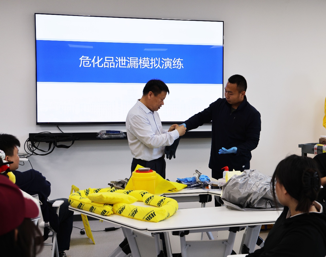 走进学校EHS(环境、健康与安全)实验室教育实践体验中心,仿佛进入一个高科技的“安全实训园”。这里没有传统的照本宣科,取而代之的是六大主题体验区:化学安全区、生物安全区、气体安全区、个体防护区、应急处置和设备操作安全区。