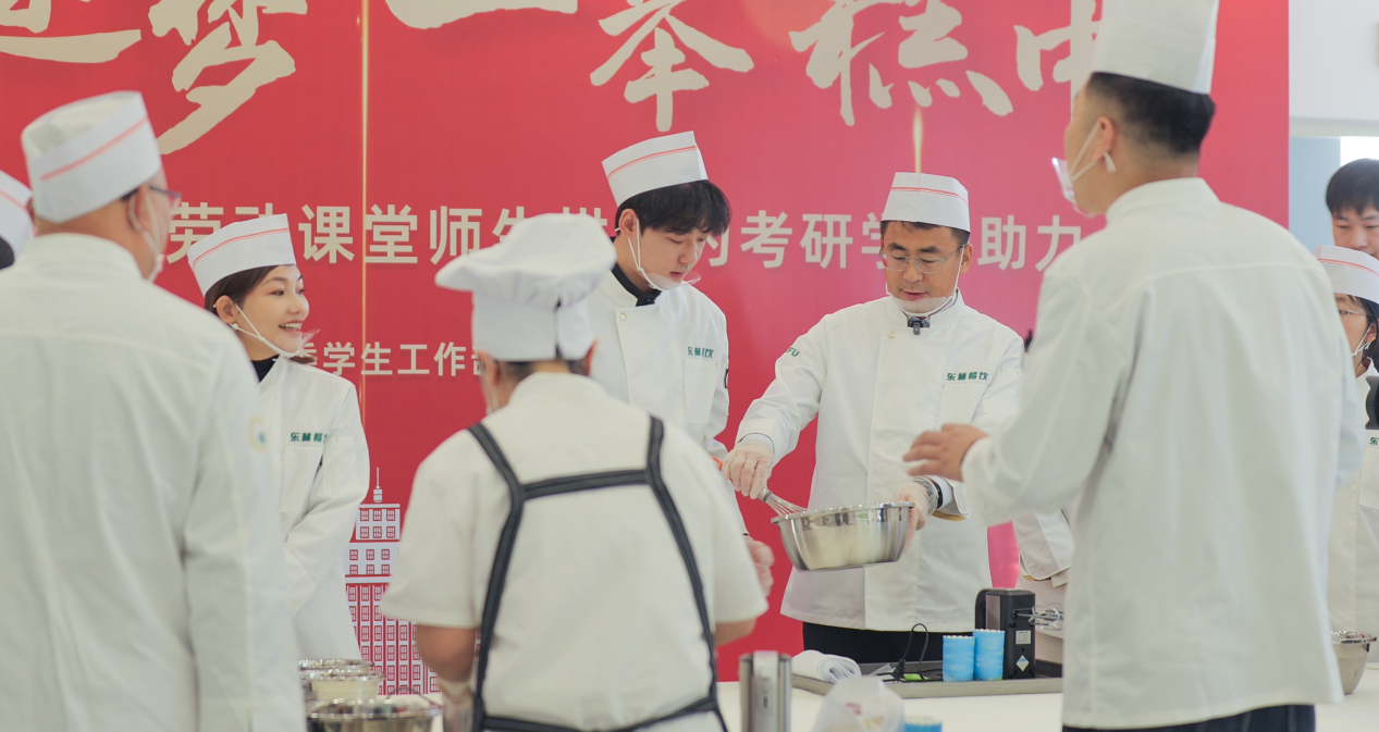 为深入推进实施学校“培根铸魂 以林育人”三年行动计划,拓展学生社区劳动育人空间,提升学生实践动手能力。近日,学校党委常委、副校长张春雷走进“一站式”学生社区劳动课堂,与师生共同体验蛋糕烘焙过程,为考研学生送上温馨祝福。