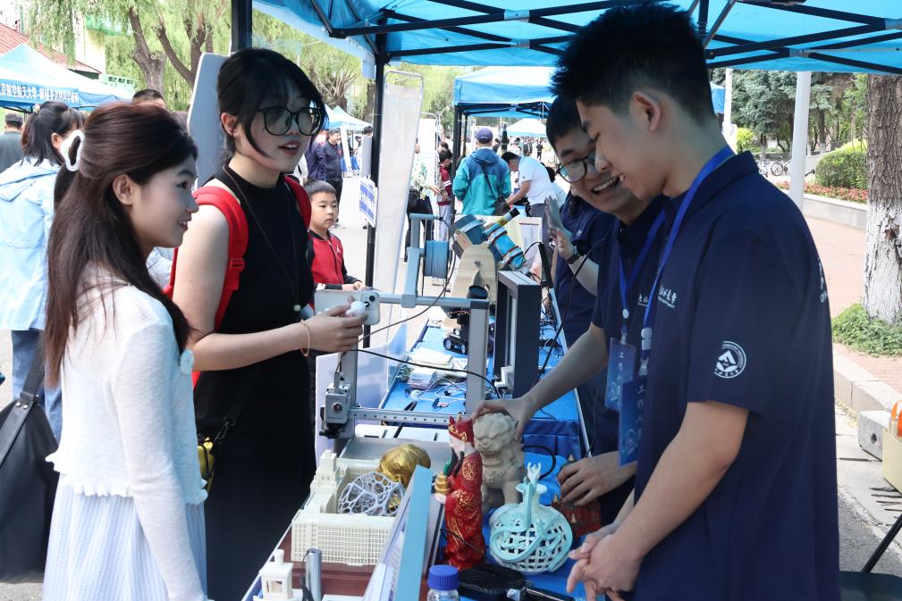 在生物质碳材料展位,一个好奇的中学生看着崔文博博士拿着用生物质碳材料制成的吸附剂样品问:“这个黑黑的材料真的能让污水变干净吗?”当现场演示污水净化实验成功时,围观人群发出阵阵惊呼。来自校外的一位科技爱好者也带着孩子在展位旁全神贯注的观看:“平时总觉得科研离生活很远,今天才知道竹子能变成光催化材料,冰球训练也能用机器人助教”。一位中学物理教师也感叹到:“贵校将‘AI + 科普’理念转化为可触摸、可互动的场景,让孩子们看到科学不是课本上的公式,而是解决问题的钥匙。”