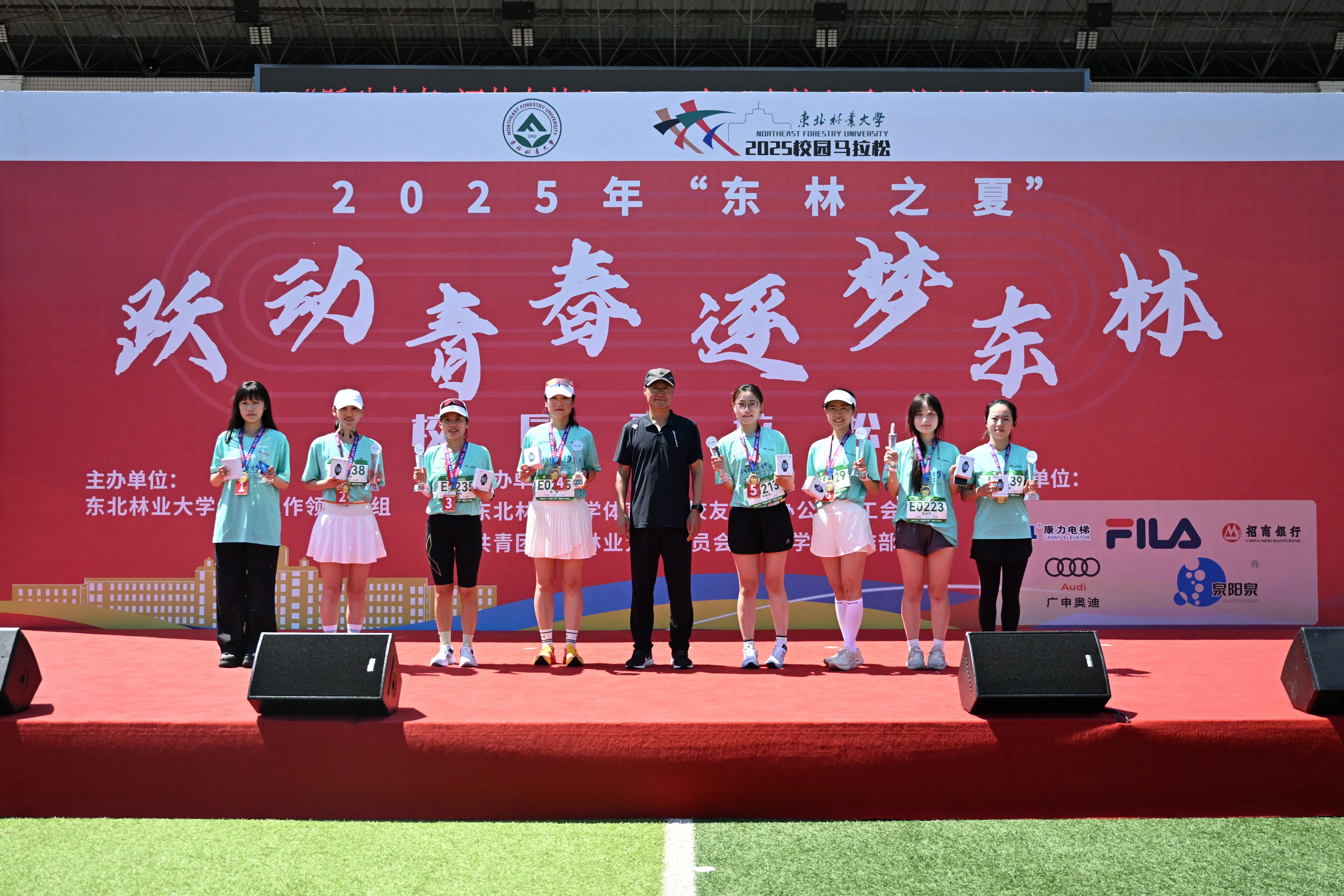 经过约2小时的激烈角逐,在第二十二届校园集体舞大赛前三名队伍的精彩表演中,比赛落下帷幕。来自生命学院的杨健周、机电学院的李有缘,分别以净成绩37分31秒和46分07秒获得竞速赛学生男子组和女子组第一名,园林学院的荆忠伟和党委教师工作部的叶蓉,分别以净成绩40分12秒和51分21秒获得竞速赛教工组男子组和女子组第一名;校友李超军和张馨睿分别以净成绩和34分18秒和51分35秒获得竞速赛校友男子组和女子组第一名。