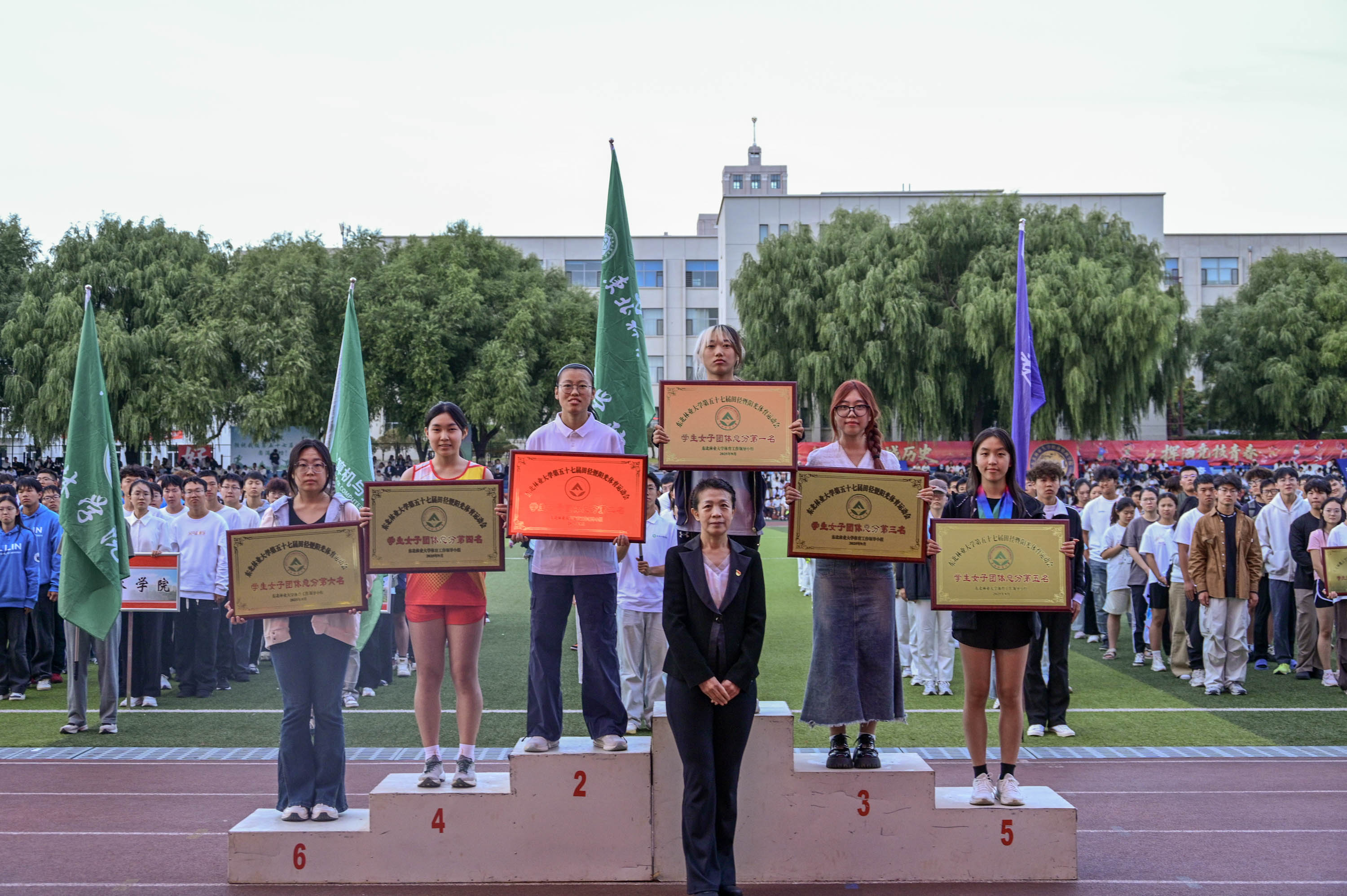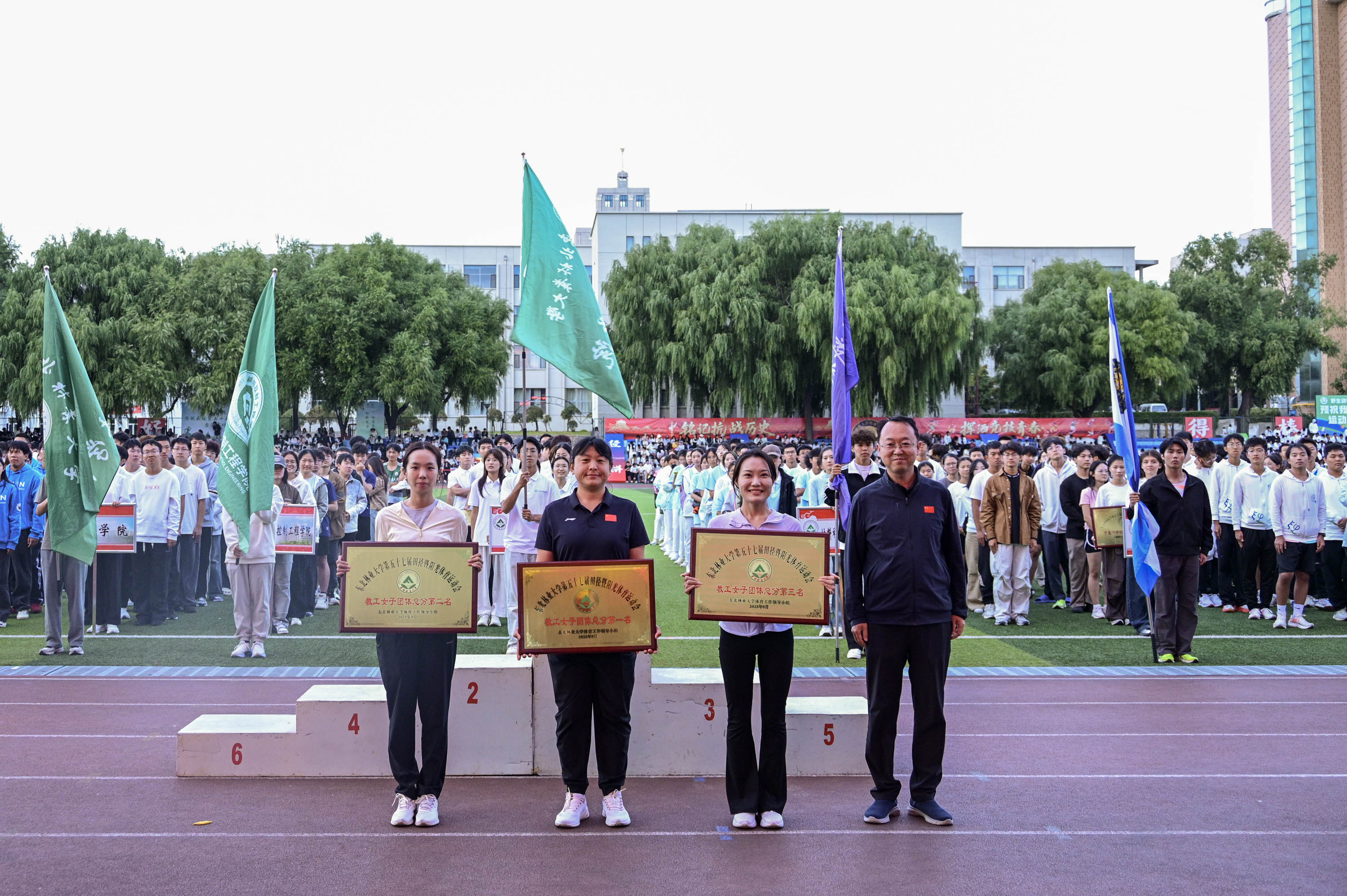 校领导宋文龙、于海鹏、李明泽、张春雷出席在田径场举行的闭幕式。体育部主任关大鹏主持闭幕式。