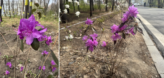 近日,兴安杜鹃“傲雪新品种和兴安杜鹃良种在校园内首次绽放,上千株盛开的兴安杜鹃点缀在校园小道旁,与春日暖阳交相辉映,成为一道靓丽风景线。