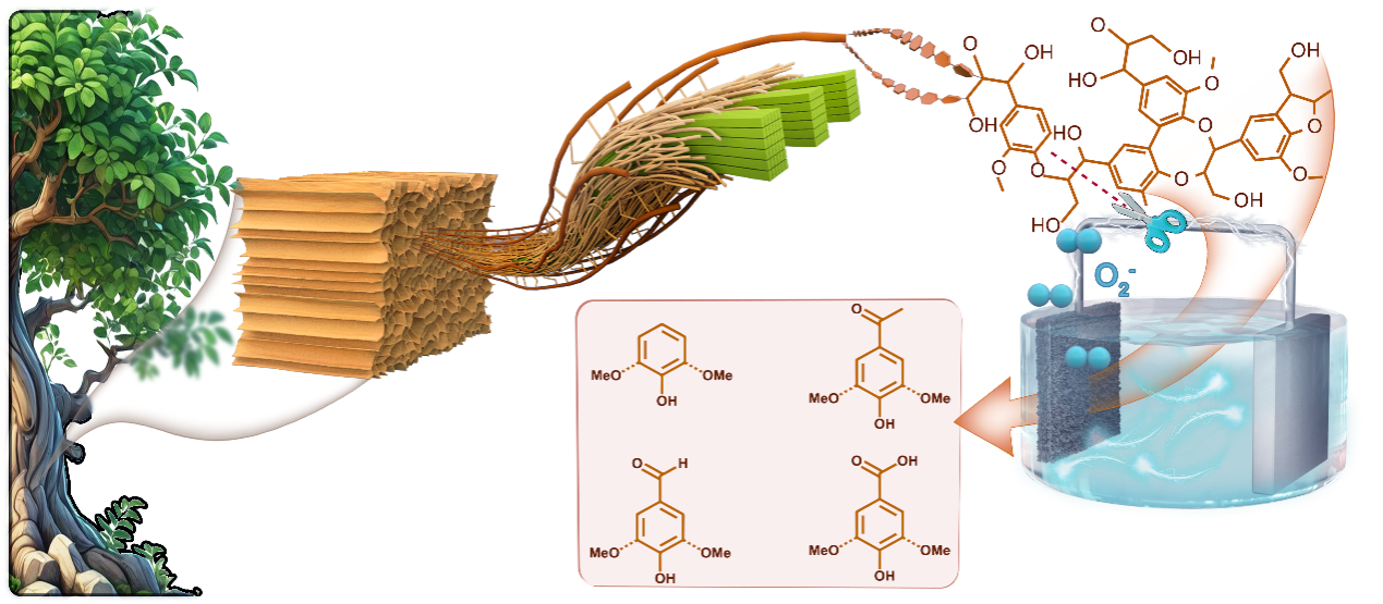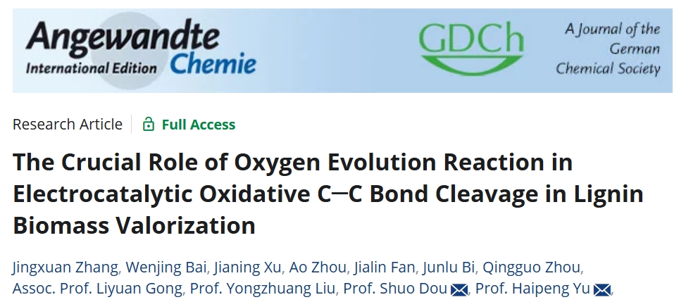 近日,我校木本油料资源利用全国重点实验室/生物质材料科学与技术教育部重点实验室于海鹏、窦烁团队在国际著名期刊Angewandte Chemie International Edition上发表了题为“The Crucial Role of Oxygen Evolution Reaction in Electrocatalytic Oxidative C─C Bond Cleavage in Lignin Biomass Valorization”研究论文。该研究构建了OER辅助的电催化Cα–Cβ键裂解体系,利用OER过程中稳定存在的活性氧物种O2−作为木质素Cα–Cβ键断裂的氧源,实现了模型物和天然杨木木质素的解聚。这些发现为OER在电催化木质素高值化利用中的关键作用提供了新的见解,促进了该天然生物质的高值利用。