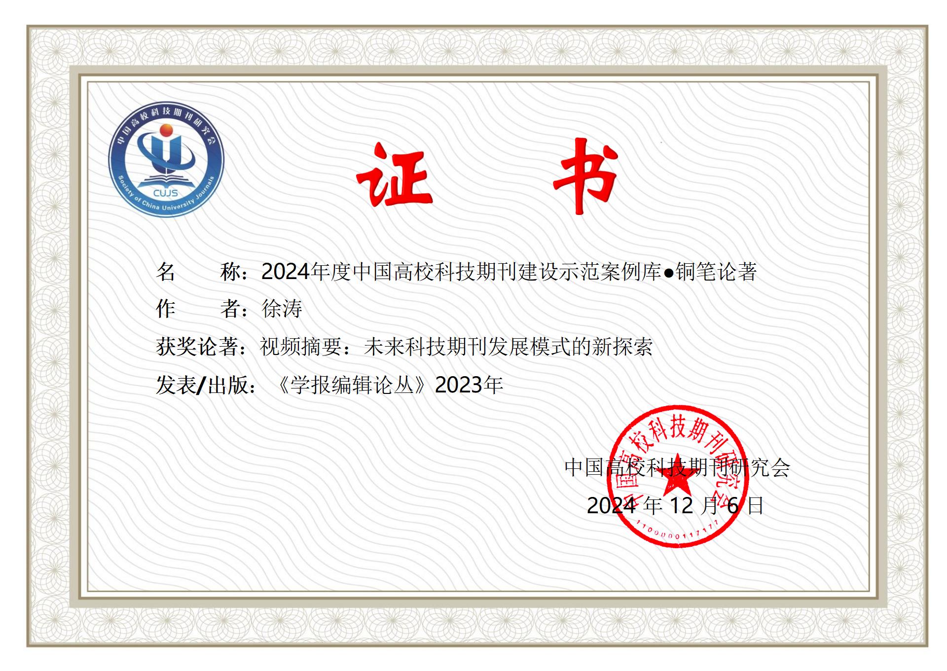 12月15日至18日,中国高校科技期刊研究会第28次年会在海南省海口市召开,大会公布了“2024年度中国高校科技期刊建设示范案例库”遴选结果,东北林业大学4种期刊凭借卓越的表现和高质量的内容成功入选。《东北林业大学学报》《林业研究(英文)》《植物研究》3种期刊入选“2024年度中国高校科技期刊建设示范案例库·百佳科技期刊”,《森林工程》和《野生动物学报》2种期刊入选“2024年度中国高校科技期刊建设示范案例库·优秀科技期刊”。此外,《林业研究(英文)》编辑部徐涛的论著《视频摘要:未来科技期刊发展模式的新探索》获“2024年度中国高校科技期刊建设示范案例库·铜笔论著”。