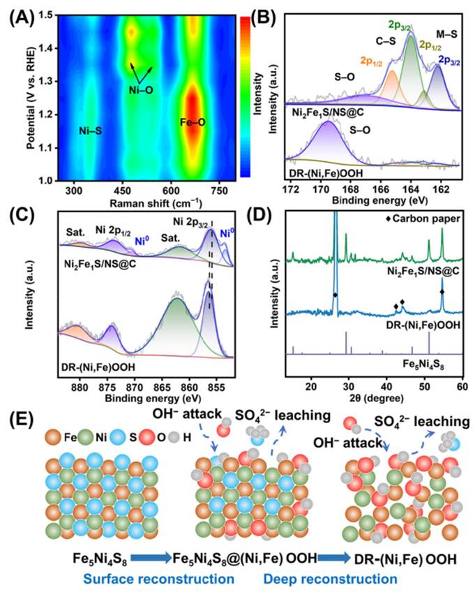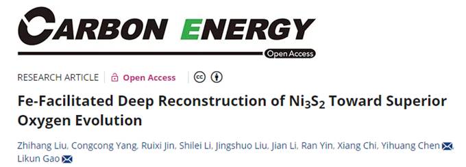 近日,我校木本油料资源利用全国重点实验室/生物质材料科学与技术教育部重点实验室李坚、高丽坤团队,在中国卓越期刊Carbon Energy上发表了题为“Fe‐Facilitated Deep Reconstruction of Ni3S2Toward Superior Oxygen Evolution”研究论文。该研究以微晶纤维衍生碳为载体构建高效电催化析氧反应(OER)催化剂,并通过原位表征与理论计算相结合,系统阐明了铁(Fe)取代诱导镍基硫化物深度重构的核心机制,为生物质材料高值化利用提供了新思路。