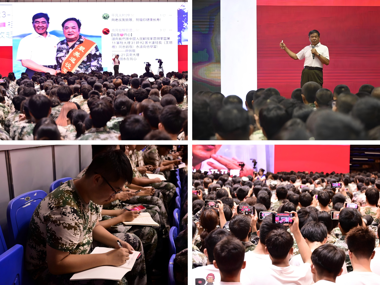 “一个民族要崇尚英雄,敬重英雄,以英雄为师”,蔡朝东以“中国梦”为核心,结合自己对越自卫反击战的亲身经历,讲述战火中与战友并肩作战、捍卫国家尊严的故事,生动诠释“亏了我一个,幸福十亿人”的“老山精神,鼓励全体同学与解放军战士“比信念、比责任、比艰苦、比奉献”。蔡朝东从“价值观”“道德观”“审美意识”三个维度,呼吁全体同学应当把责任担当落实到三个方面:做好应该做好的事情、承担应该承担的义务、履行应该履行的使命,引导青年将个人奋斗融入时代洪流,勇担民族复兴大任,树立正确价值导向。