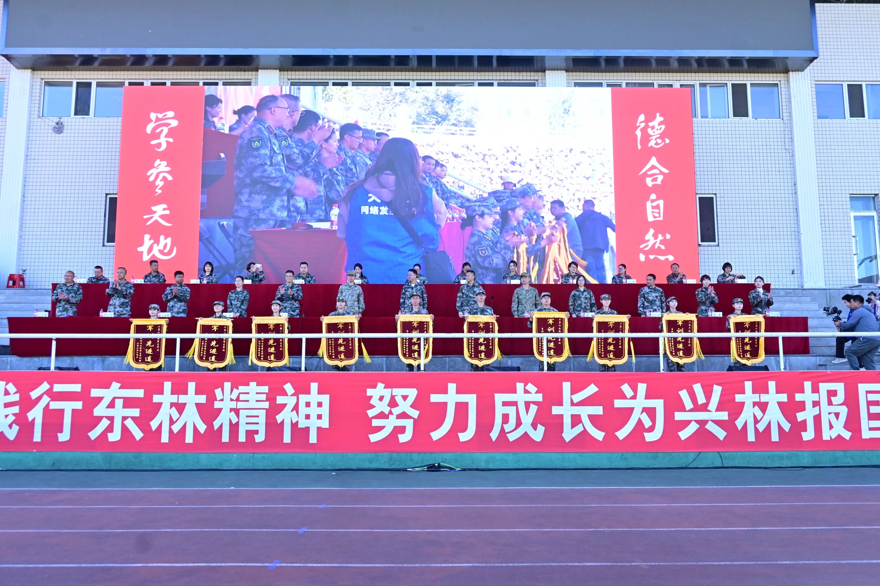 历经17天淬火成钢的军训洗礼,9月17日上午,东北林业大学2025级学生军训总结表彰大会拉开帷幕。校党委常委、副校长、军训团团长李明泽,校党委常委、副校长、军训团政委张春雷,与承训部队首长,香坊区武装部政委许金永检阅军训队伍。军训团参谋部、政治处,各营营长、教导员,承训教官代表及2025级本科新生列阵受阅。党委学生工作部部长、武装部部长、学生军训团参谋长于洋主持大会。