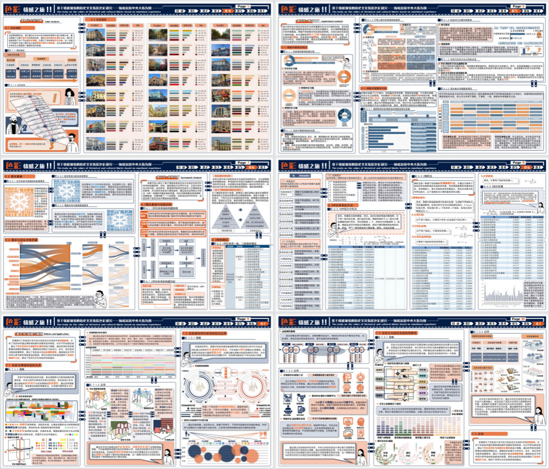 获奖作品《色彩情感之旅!!——基于情感体验的历史文化街区色彩研究--以哈尔滨中央大街为例》以哈尔滨中央大街为研究对象,创新构建了历史文化街区色彩感知评价体系。研究通过实地调研、语义分析、街景图像解析与深度学习技术,系统探究了街区色彩协调度与丰富度对游客情感体验及行为意向的影响机制。在量化分析基础上,研究揭示了中央大街色彩构成在塑造游客情感体验和行为意向中的核心作用,并进一步提出多项色彩优化策略,旨在延续地域文化特色、增强街区视觉吸引力与情感连接,从而提升游客整体体验感受,为历史文化街区的可持续发展提供科学依据与实践路径。