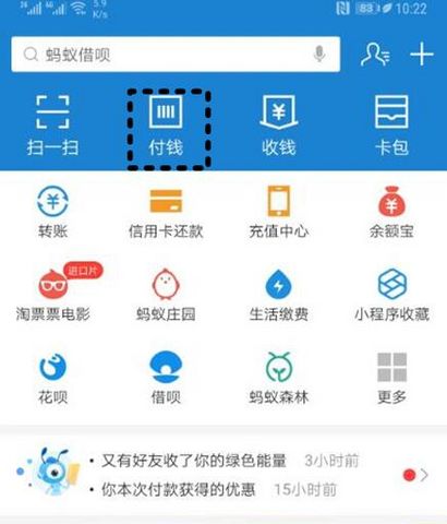 1)打开支付宝APP中的“付钱”对准终端机扫码模块支付;