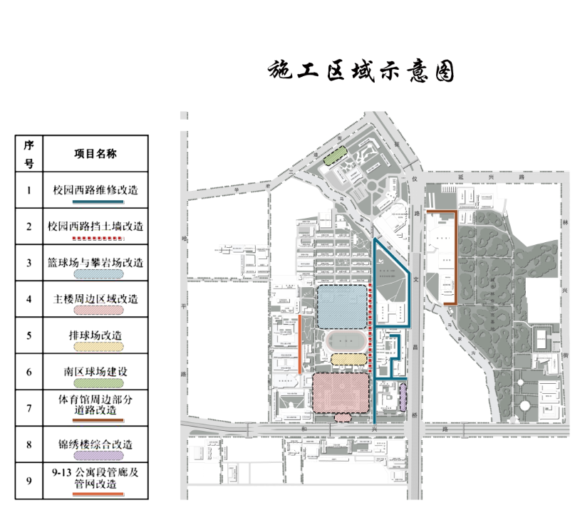 在此,对施工期间给师生出行带来的不便深表歉意,敬请谅解与支持。