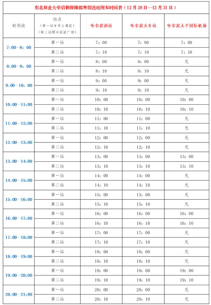 为切实做好防疫工作,方便学生寒假离校,学校定于2021年12月28日—12月31日开通“爱心送站车”为离校学生送站,现将有关事宜通知如下:
