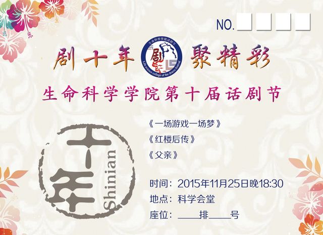 生命科学学院“话剧节”,历经十年精心打造,秉承文化育人理念,传递真善美,弘扬社会主义核心价值观,为青年学生提供展现自我、演绎青春的舞台,是生命科学学院响誉校园内外的特色文化品牌,深受学生喜爱。十年积累,青春绽放,生命学院全体师生诚挚邀请您亲临现场体验“话剧节十周年”的别样精彩,届时还会设置抽奖环节,百余份精心准备的十周年限量版纪念品会现场派送,机会不容错过!