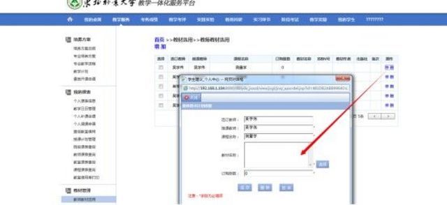 随着我校教务管理系统的不断完善,教材预订模块已经开发完成。自本学期起在教务系统上完成教材征订工作,教师直接从强智教务管理系统教师端录入、送审,教学秘书进行汇总检查、送审,教学院长进行审定。