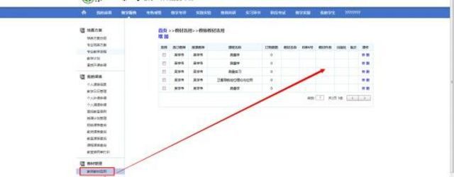4.进入选择教材页面,填写需要的教材(教材名称、书号、作者、出版社、版次、单价),信息核对后送审。至此教师端选择教材环节结束。