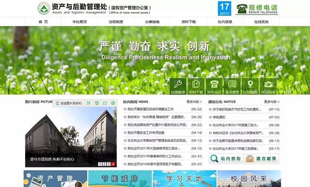 进入“资产与后勤管理处(国有资产管理办公室)”主页,点击“在线报修”