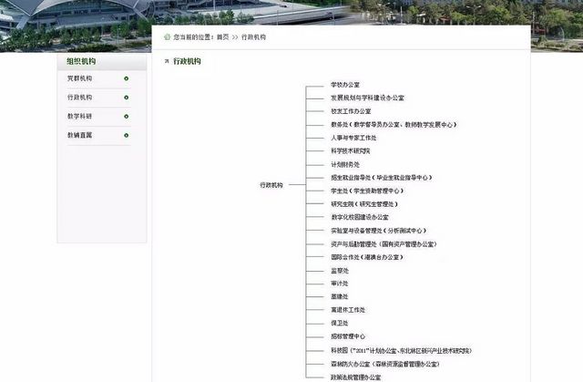 进入“东北林业大学官网”,点击组织机构中“行政机构”