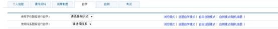 2.进入系统后选择“自学”菜单,“使用学校题库进行自学”点击下拉框选择自学的知识点,可以在“浏览模式、逐题自学模式、自由选题模式、自测模式”任选一种模式进行自学。