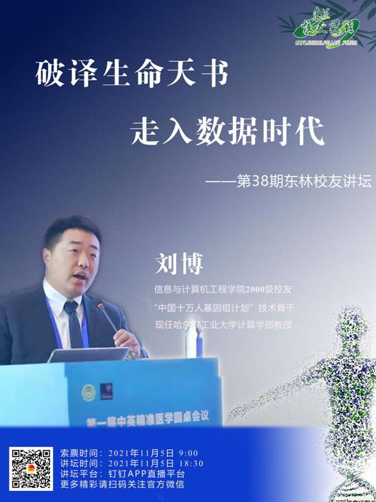 刘博校友将结合自身的心路历程,深情讲述他在生物信息技术领域中的感人故事和宝贵经历,分享他对大学生科研攻关的独特见解和深刻认识。
