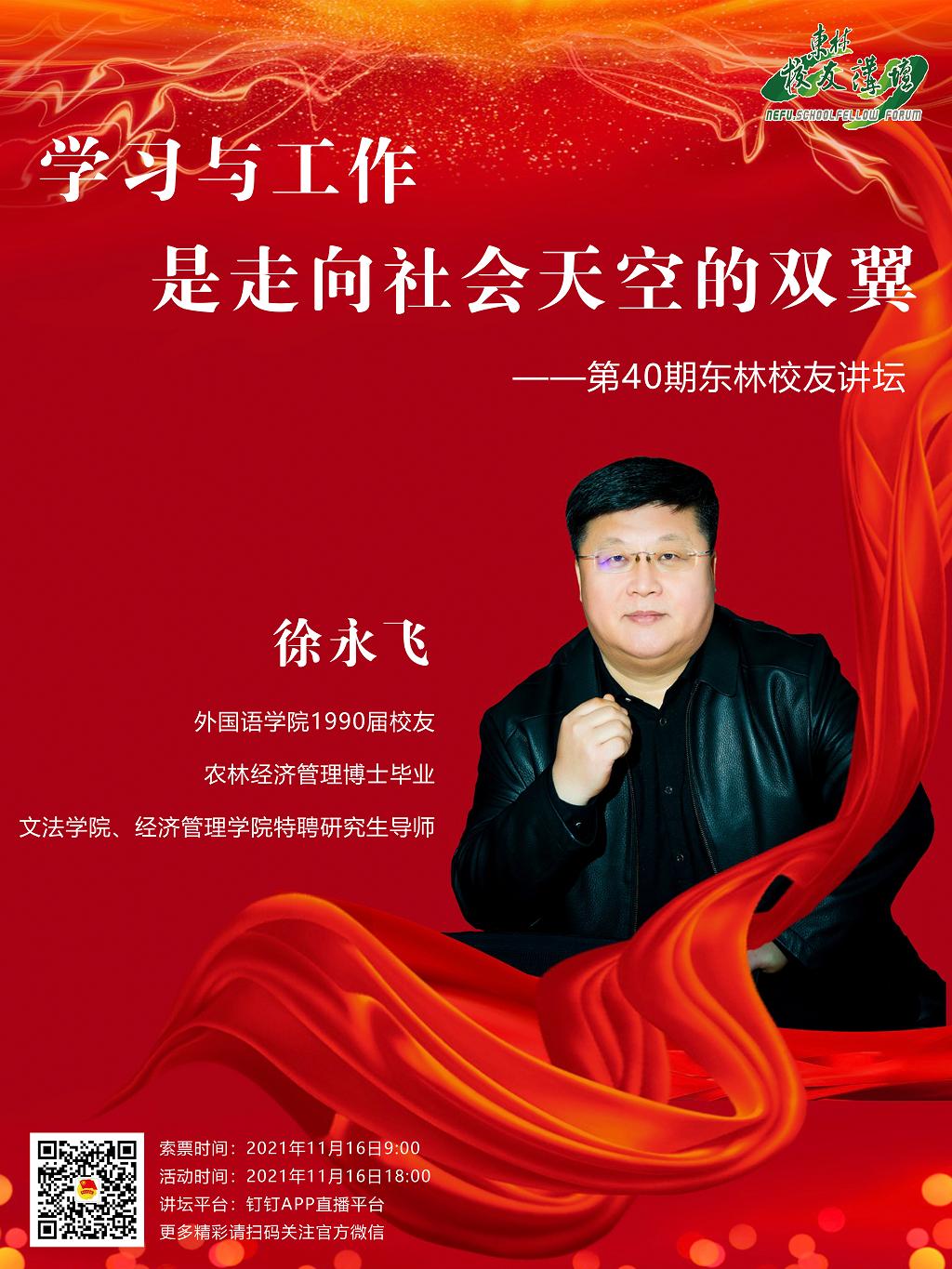 徐永飞校友将结合自身学习和工作的经验,切身的谈一谈他走向社会之后的体会和感悟,希望给东林学子以建议和帮助!