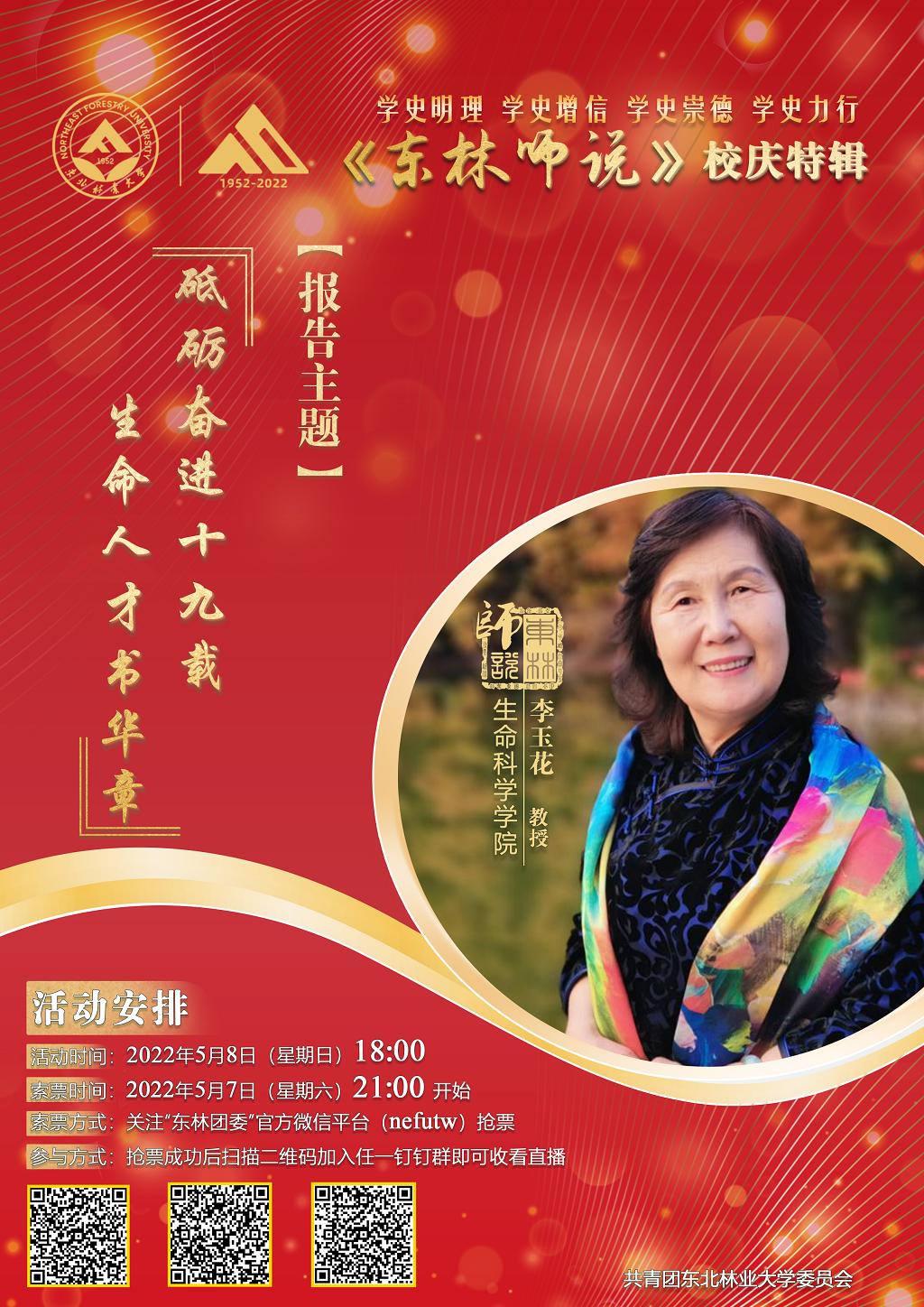 李玉花教授将结合自身工作和学习的经历,和师生们分享在学校70年发展历程中,生命科学学院拼搏奋斗、开拓创新的感人故事,介绍建院以来的办学成就,阐述学院的发展规划和目标,引领广大青年师生努力成长堪当民族复兴重任的时代新人,为学校“双一流”建设和跨越式发展贡献智慧和力量!