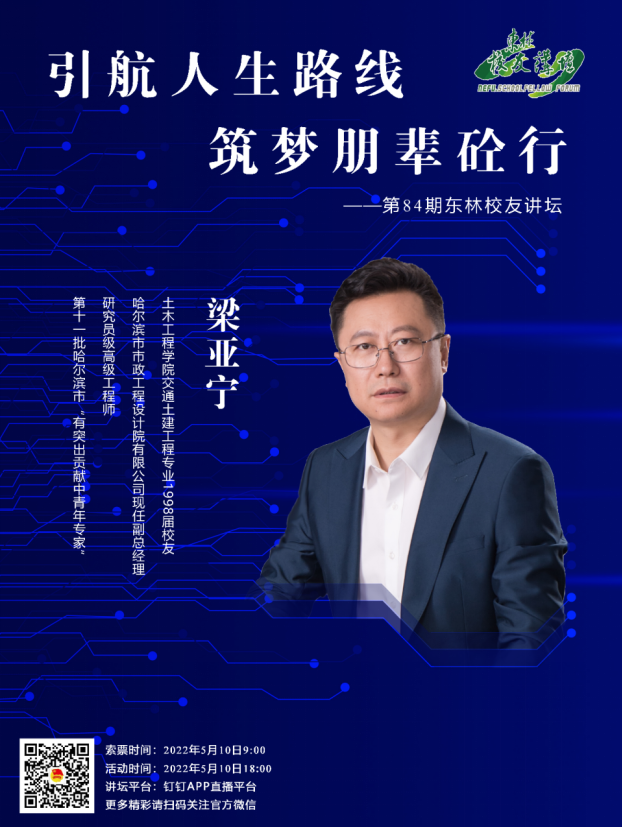 梁亚宁校友将结合自身工作经历,深情讲述多年奋斗在道路桥梁一线的心路历程和收获感悟,为同学们指引前进的方向。