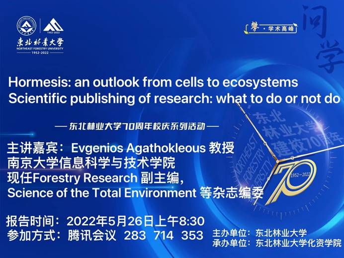个人简介:Evgenios Agathokleous as a full scholar of the Japanese government, received a Ph.D. in Environmental Resources by Hokkaido University (March 2017). Since April 2019, he is a Full Professor (Ecology) at the School of Applied Meteorology of Nanjing University of Information Science and Technology (NUIST), via the talent introduction program of Jiangsu Province. He has so far published about 160 articles in lead international journals, of which nearly 80 as first author, and 11 book chapters, of which 5 as first author. He was included in the Stanford University list (2021) with the world’s top 2% scientists for both career-long and single year impact in Environmental Science (subfield) and Earth & Environmental Science (field). He is Associate Editor-in-Chief of the Journal of Forestry Research, and Editorial Board member of 11 other international journals, including Science of the Total Environment, Current Opinion in Environmental Science & Health, Journal of Environmental Science and Health Parts A and B, Frontiers in Environmental Science, and Plant Stress.
