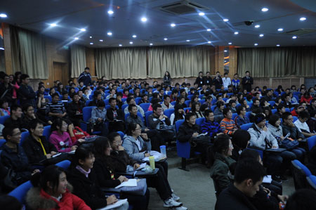 讲座一开场,邵华先生便以幽默的语言活跃了现场的气氛,一场企业家与大学生之间的诚挚对话就在轻松活泼的氛围中展开了。首先,邵华先生指出成功人与普通人之间最大的区别,就在于思维方式的不同和时间管理的不同。邵华先生通过讲述自己的亲身经历和身边发生的小故事形象地阐述了思维方式和时间管理的重要性,他指出:拥有良好的思维方式,学会管理时间,是成为成功人士的前提。随后邵华先生又和同学们分享了他的成功经验以及他所践行的“知”、“信”、“行”、“果”四字箴言。